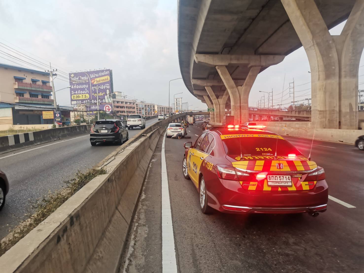 ขณะออกตรวจในพื้นที่รับผิดชอบ พบประชาชนรถยางแตก เจ้าหน้าที่ตำรวจทางหลวงได้ดำเนินการช่วยเหลือ เปลี่ยน
